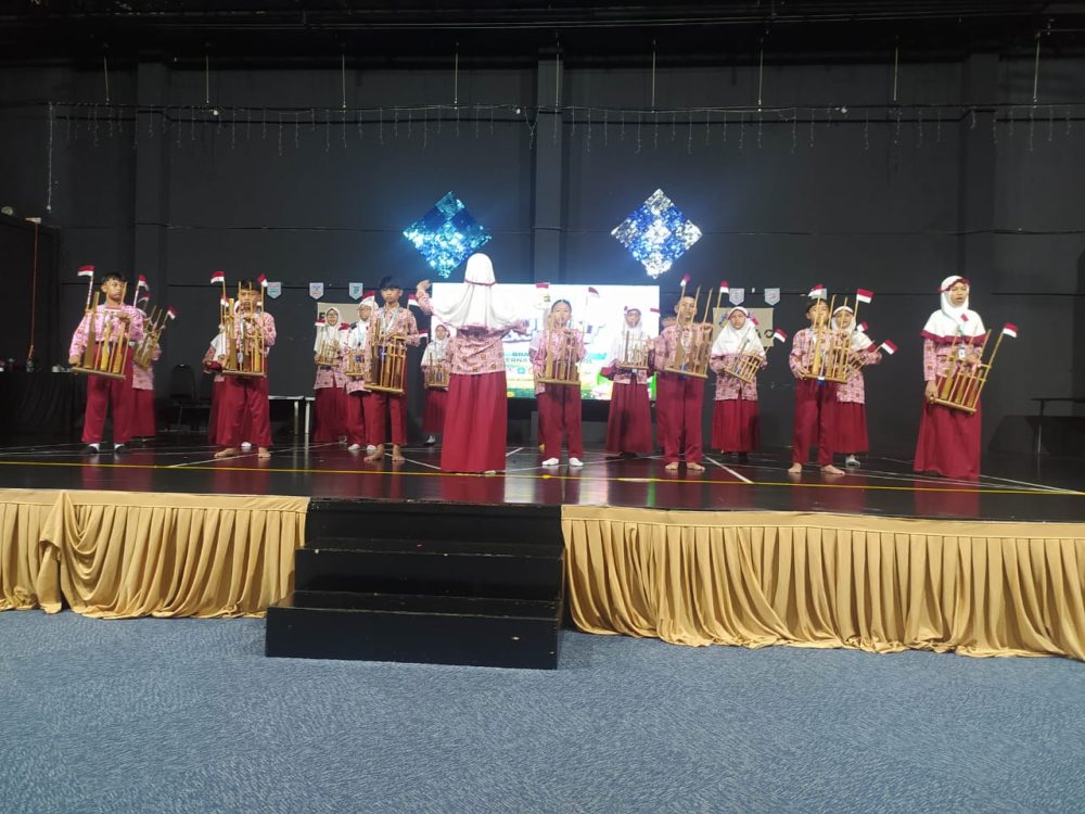 Mengawali penampilan pertukaran budaya dalam program Student Exchange 2025 Kelompok Kerja Kepala Sekolah Dasar/ Madrasah Ibtidaiyah (K3SD/MI) Muhammadiyah Surabaya, tim musik angklung tampil percaya diri di Brainy Bunch International School (BBIS) Kuala Lumpur Malaysia, Rabu (18/6/2025).