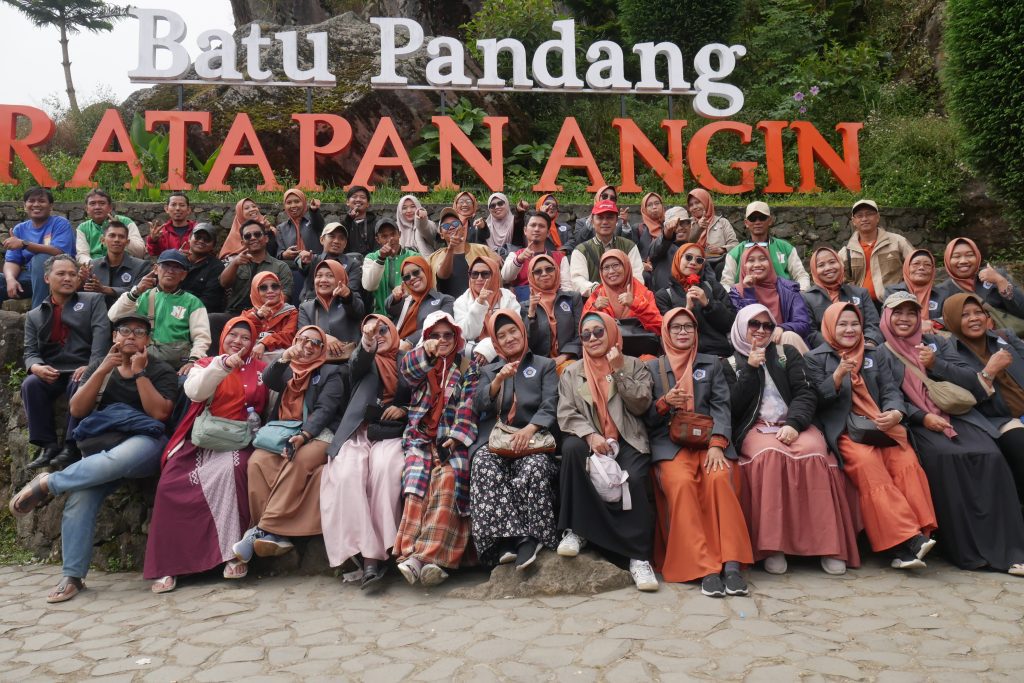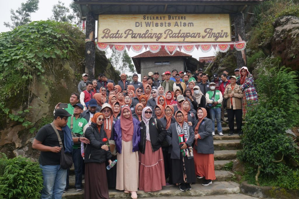 Tiba pada pagi hari setelah shalat subuh, rombongan SD Muhlas tiba di tempat wisata pertama Batu Pandangan Ratapan Angin.