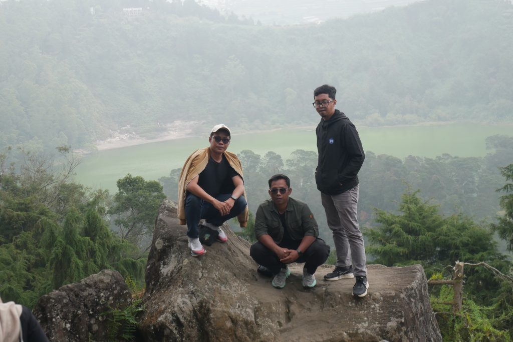 Destinasi dataran tinggi ini menyuguhkan spot foto dengan pemandangan bukit yang indah dilengkapi dengan adanya Telaga Warna dan Telaga Pengilon. Sontak seluruh rombongan mengabadikan dengan bersua foto, baik sendiri maupun berkelompok.