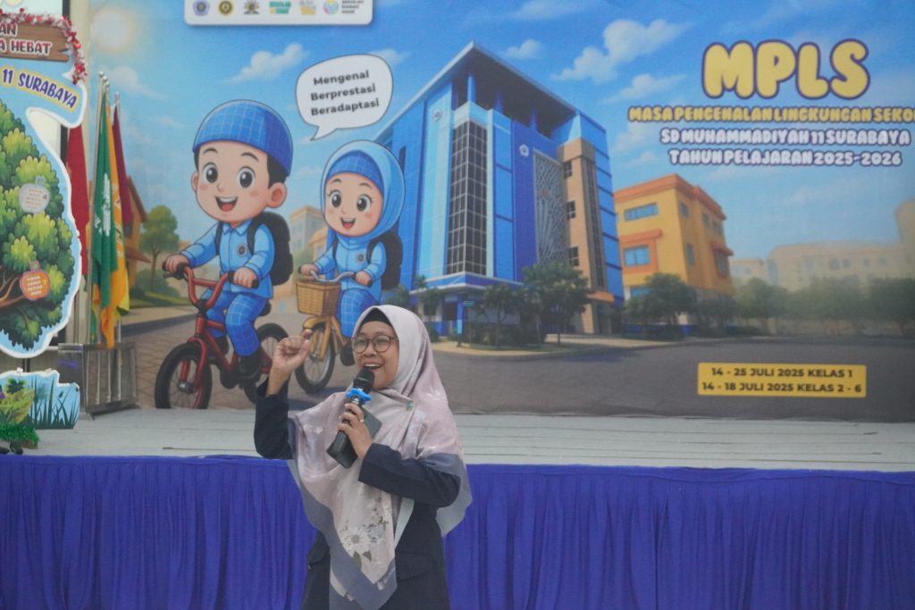 Hari pertama masuk sekolah tahun ajaran 2025-2026, SD Muhammadiyah 11 Surabaya melaksanakan Masa Pengenalan Lingkungan Sekolah (MPLS), Senin (14/7/2025).