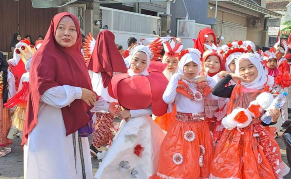 Dengan mengenakan gaun atau baju yang uniknya dan menarik, bahkan ada juga dari daur ulang, ratusan siswa Sekolah Prestasi SD Muhammadiyah 11 (SD Muhlas) Surabaya mengikuti karnaval merah putih keliling kampung sekitar lingkungan sekolah dalam rangka memperingati HUT Ke-80 RI pada hari Jumat (15/8/2025).