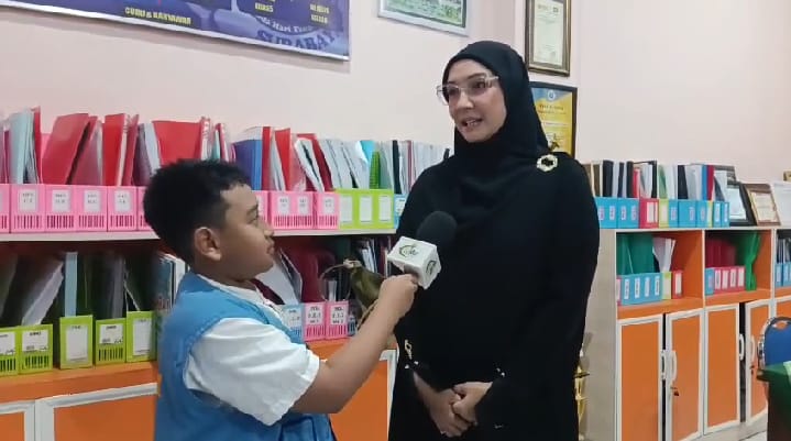 Dalam praktik wawancara, Intan mengatakan sangat senang bisa berbagi bersama keluarga besar SD Muhlas. “Hadir di SD Muhlas pagi ini sangat menyenangkan,” ujarnya.