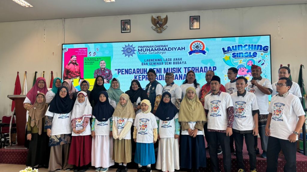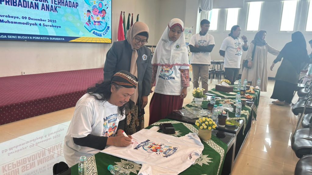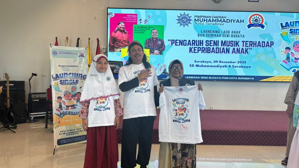 Suasana semangat dan ceria menyelimuti acara peluncuran resmi lagu anak terbaru yang diciptakan khusus untuk membangkitkan semangat belajar dan karakter Islami siswa Muhammadiyah, Selasa (9/12/2025) di aula SD Muhammadiyah 4 Pucang Surabaya.